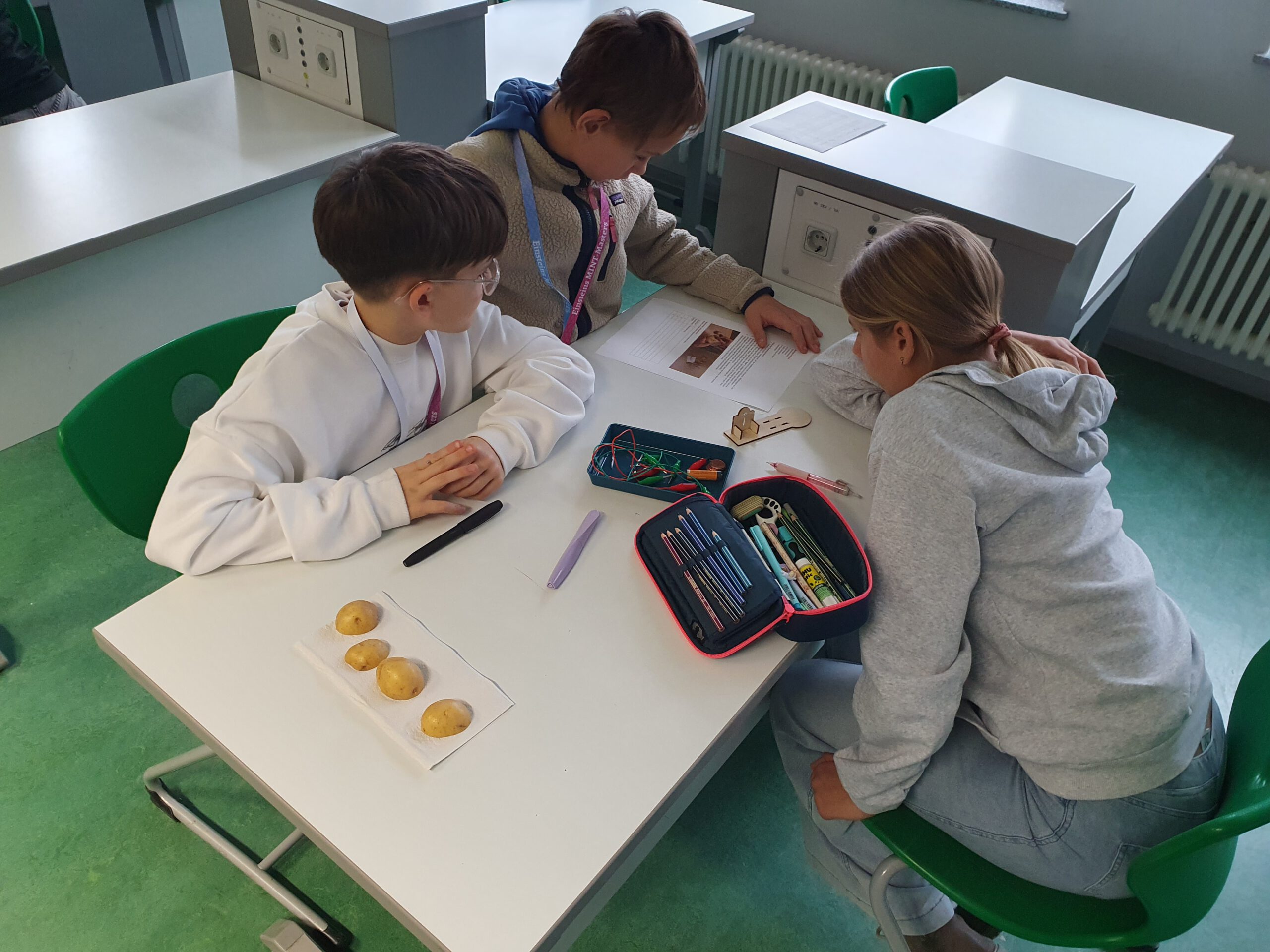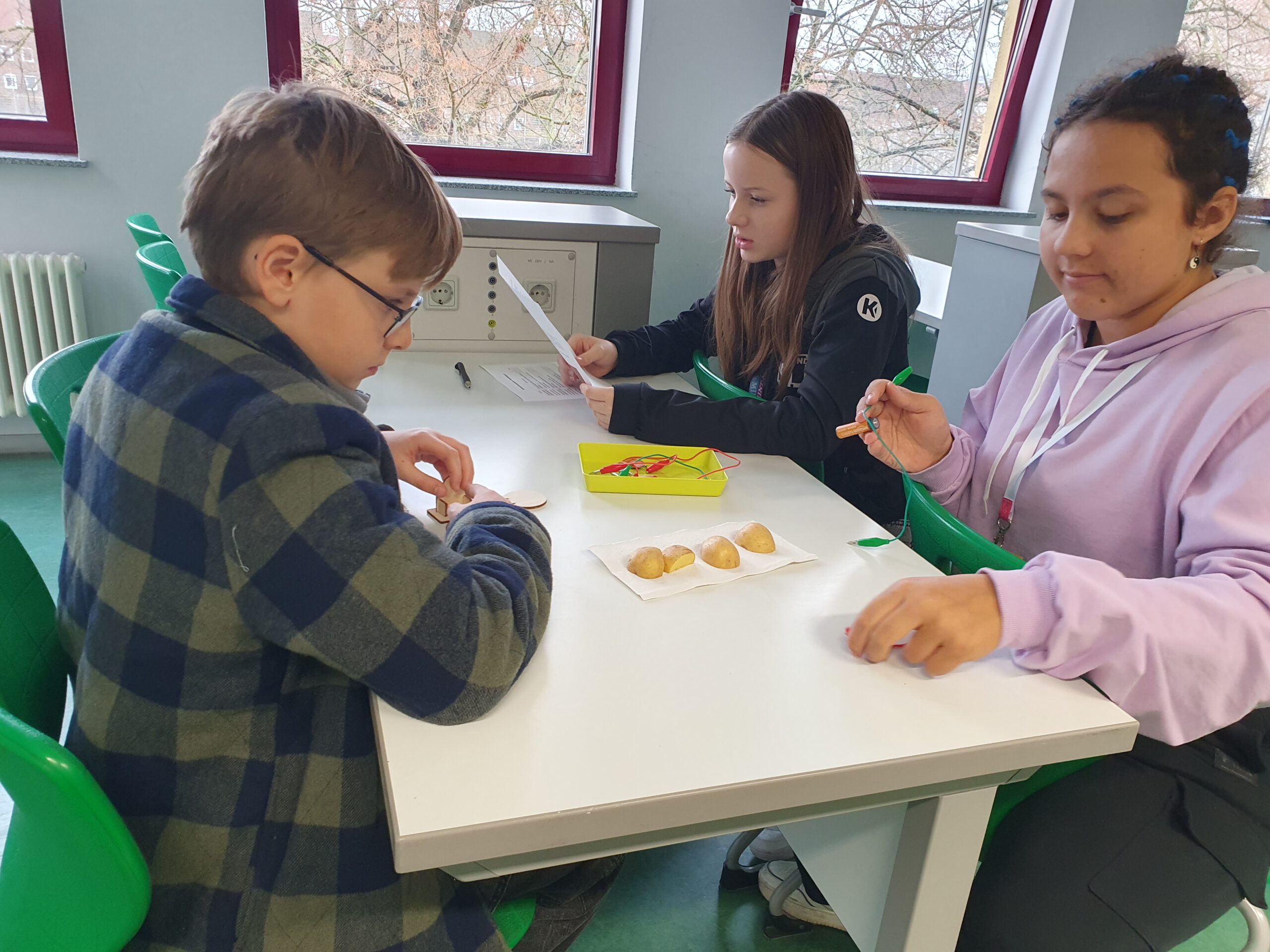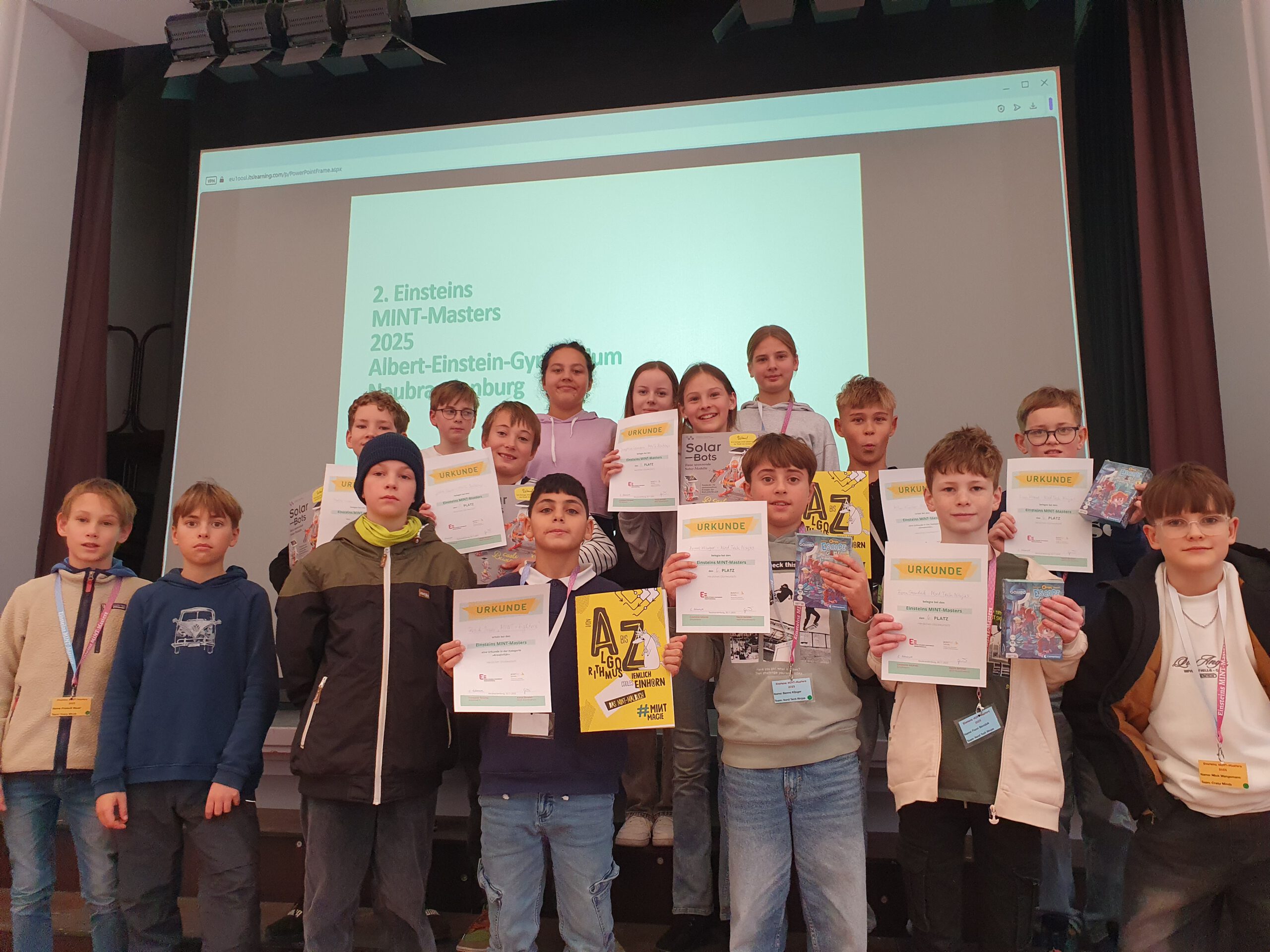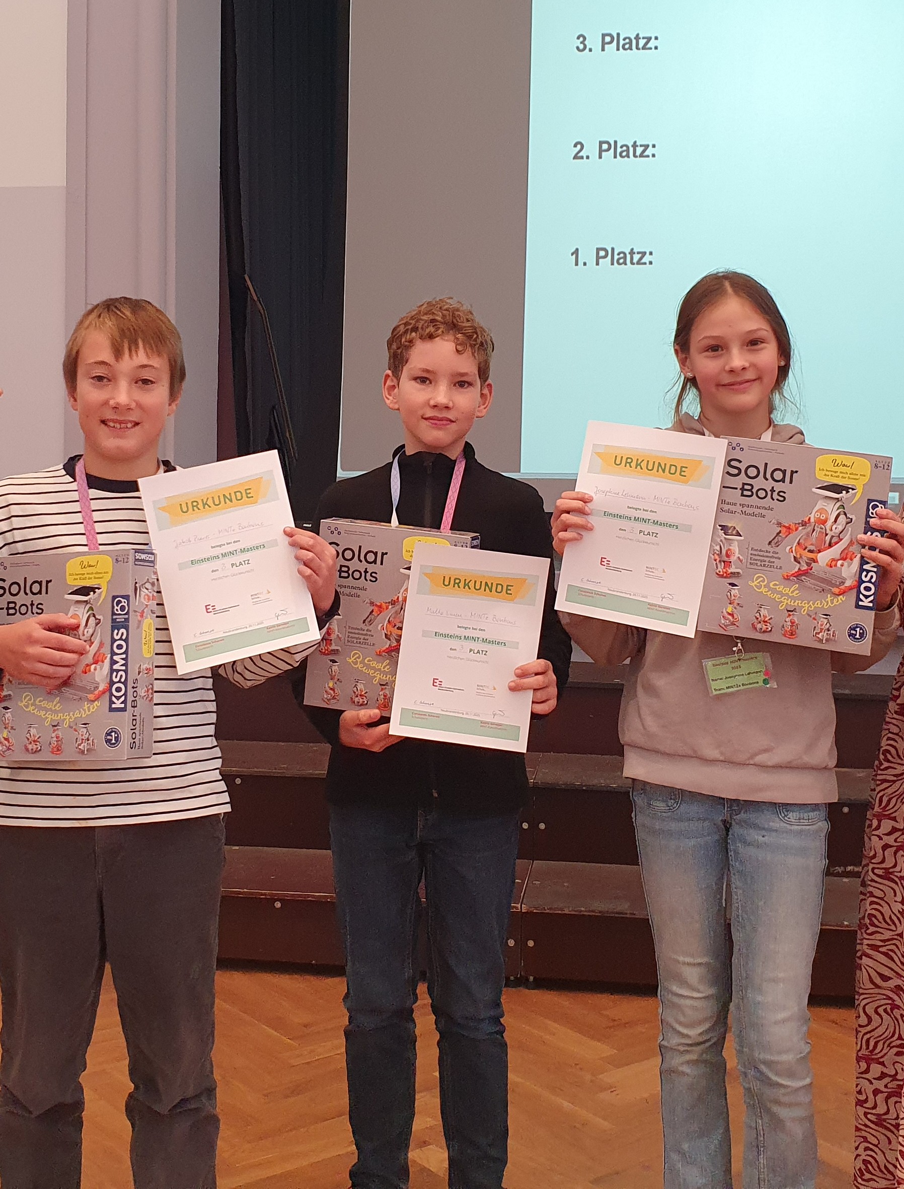 Am 20. November 2025 machten sich die sechsten Klassen unserer Schule auf den Weg nach Neubrandenburg, um am regionalen Wettbewerb MINT Masters teilzunehmen, der am Albert-Einstein-Gymnasium ausgerichtet wurde. Insgesamt traten dort 22 Teams gegeneinander an. Die Schülerinnen und Schüler arbeiteten in Physik, Chemie und Biologie an verschiedenen Experimenten – alle rund um das zentrale Thema Kartoffel. Dabei ging es darum, Beobachtungen zu machen, Hypothesen zu formulieren, Versuche durchzuführen und gemeinsam zu Ergebnissen zu gelangen. Die Aufgaben wurden zunächst einzeln an verschiedenen Stationen bearbeitet und anschließend in die Teamwertung zusammengeführt. Unsere Schule war mit sechs Teams aus den Klassen 6a bis 6d vertreten. Die Gruppen arbeiteten in Zweier- oder Dreierkonstellationen, gaben sich kreative Teamnamen und stellten sich mit einem kleinen Steckbrief vor. Bewertet wurden unter anderem Teamarbeit, Kooperation, experimentelle Genauigkeit, die Qualität der Hypothesen und die Präsentation der Ergebnisse. Zusätzlich gab es eine eigene Kreativnote, die besonders originelle Ideen auszeichnete. Unsere Schule trat mit sechs Teams aus den Klassen 6a bis 6d an. Die Gruppen bestanden aus zwei bis drei Mitgliedern, gaben sich eigene Teamnamen und gestalteten kreative Steckbriefe. Diese Kreativität wurde zusätzlich belohnt: Der Kreativpreis für Namen und Steckbrief ging an das Team „MINT Fighters“, das dafür ein MINT-Malbuch vom Ministerium für Forschung und Schule erhielt. Auch in der Gesamtwertung erzielten unsere Schülerinnen und Schüler hervorragende Ergebnisse. Die „Nord Tech Ninjas“ aus der 6a erreichten den 6. Platz und gewannen ein Escape-Game-Set von Clementoni. Das Team „MINTz Bonbons“ aus der 6d belegte den 3. Platz und freute sich über einen Solarroboter-Bausatz von KOSMOS. Darüber hinaus wurden zwei Jungen unserer Schule für ihre besonders kreative Präsentation zusätzlich ausgezeichnet Die Rückmeldungen der Schülerinnen und Schüler fielen durchweg positiv aus. Besonders geschätzt wurden das eigenständige Experimentieren, das Arbeiten in kleinen Teams und die Möglichkeit, eigene Lösungswege und Hypothesen zu entwickeln. Der Wettbewerbstag zeigte eindrucksvoll, wie viel Freude naturwissenschaftliches Arbeiten machen kann.