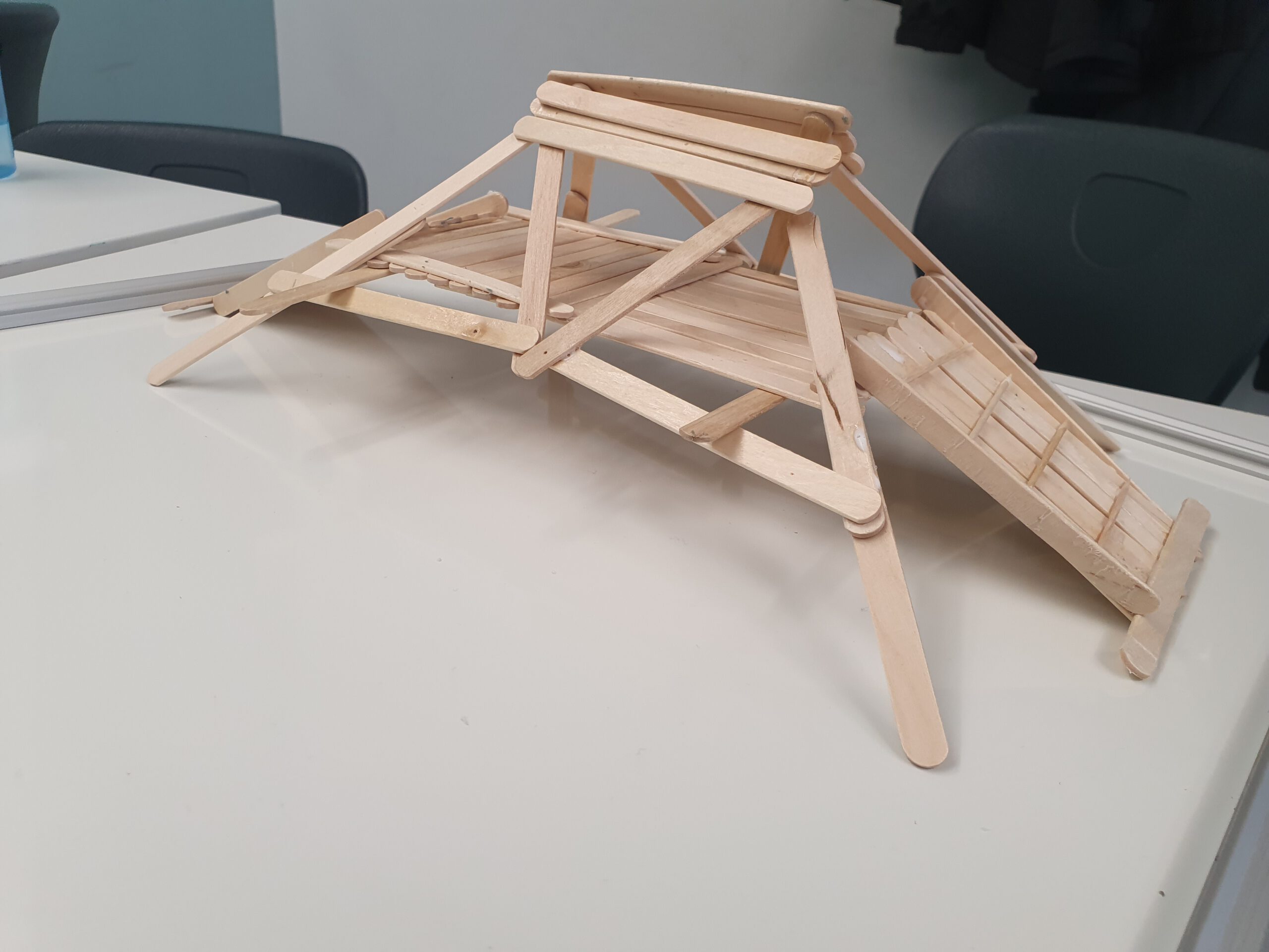 Die Herausforderung lautete: Eine Brücke aus Holzstäbchen zu bauen – so, wie man sie aus Nationalparks über kleinen Bächen kennt. Dabei mussten mehrere Kriterien erfüllt werden: Die Brücke sollte eine Spannweite von mindestens 15 cm haben, stabil genug sein, um ein kleines Gewicht (einen Radiergummi) zu tragen, und ausschließlich durch Kleben, Leimen, Binden oder nach dem Prinzip Leonardo da Vincis zusammengehalten werden.