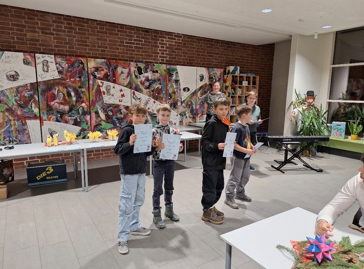 Am Schulzentrum am Sund fand die Siegerehrung der Mathematik-Olympiade statt. Die Plätze 1 bis 3 wurden ausgezeichnet und qualifizierten sich für die nächste Runde im Rathaus Stralsund. Außerdem erhielten alle Schülerinnen und Schüler mit 20 Punkten oder mehr eine Anerkennung für ihre Leistungen. Weitergekommen sind Teilnehmende aus den Klassenstufen 3 bis 6. Für eine schöne Atmosphäre sorgte die musikalische Begleitung von Mick Ocean. Zahlreiche Eltern und Verwandte waren bei der Siegerehrung anwesend. Herr Rose, der die Mathematik-Olympiade an unserer Schule betreut, begleitete die Veranstaltung. Wir freuen uns auf die nächste Runde der Landesolympiade.
