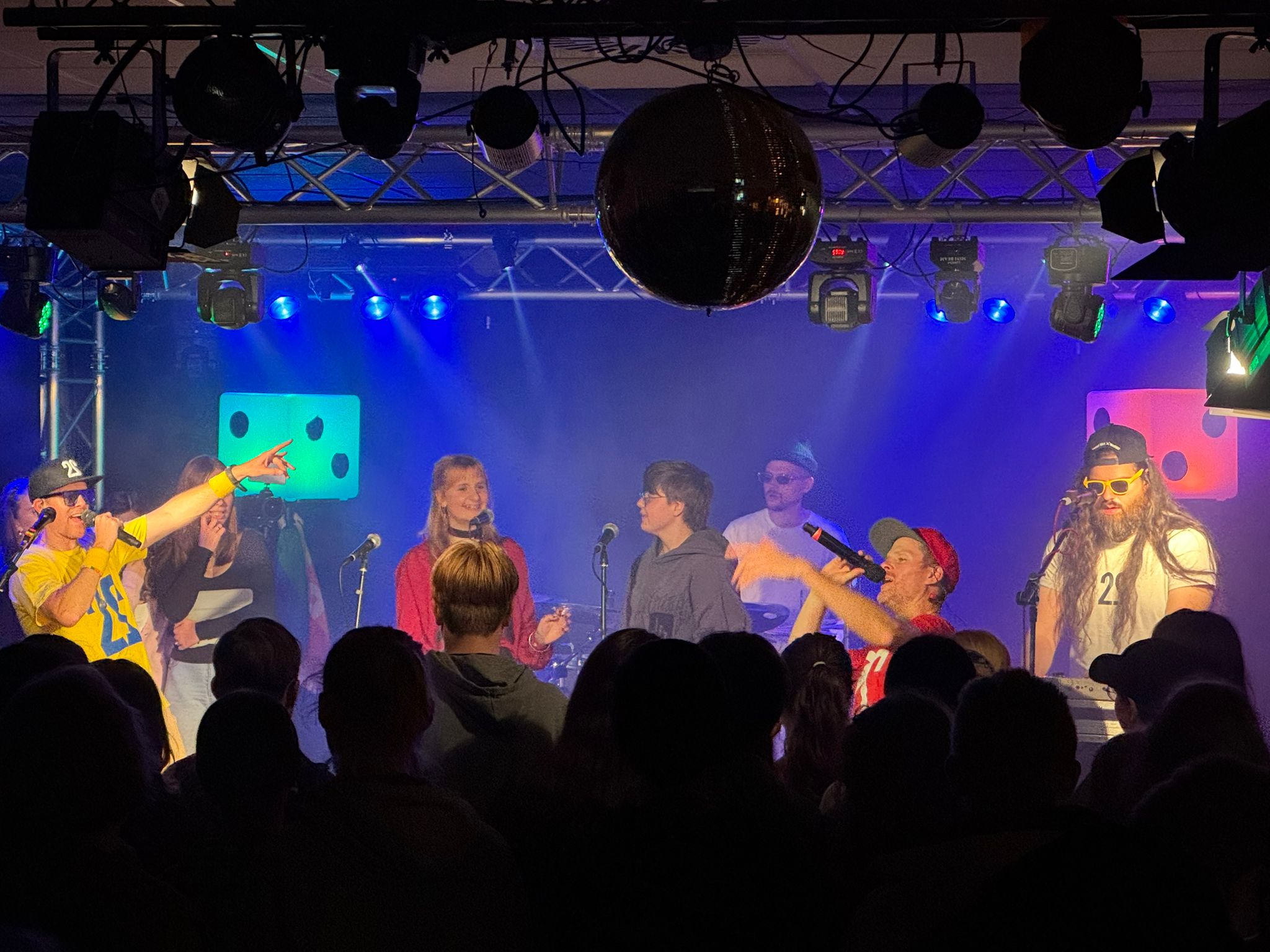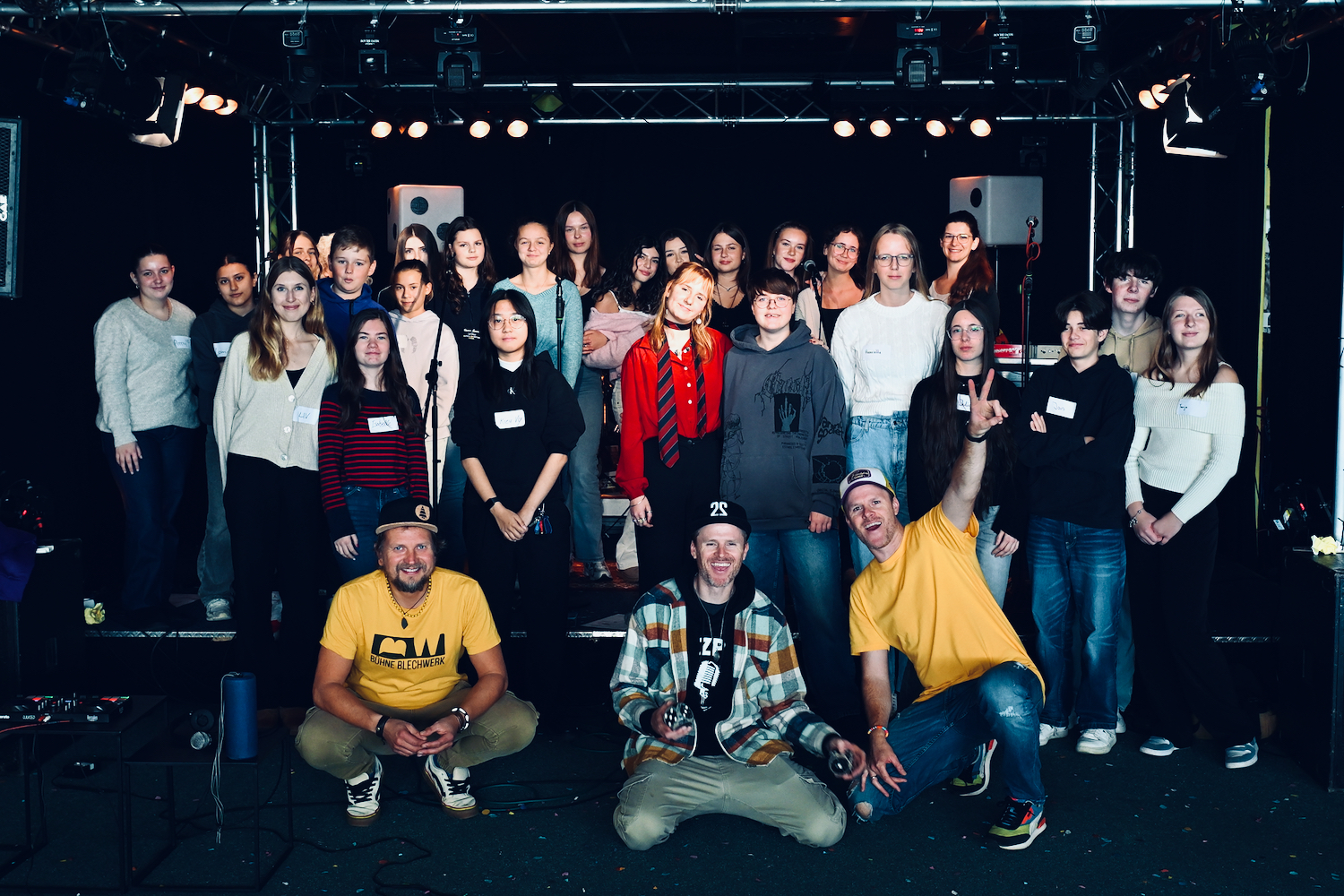 Krönender Abschluss war ein Schülerkonzert in der Bühne Blechwerk, zu dem rund 100 Schüler*innen des Schulzentrums am Sund, des Hansa-Gymnasiums, der Gesamtschule Grünthal und der Berufsschule Velgast kamen. Gemeinsam mit Zweierpasch verwandelten die Jugendlichen die Bühne Blechwerk in ein brodelndes Zentrum aus Beats, Energie und Begeisterung.
