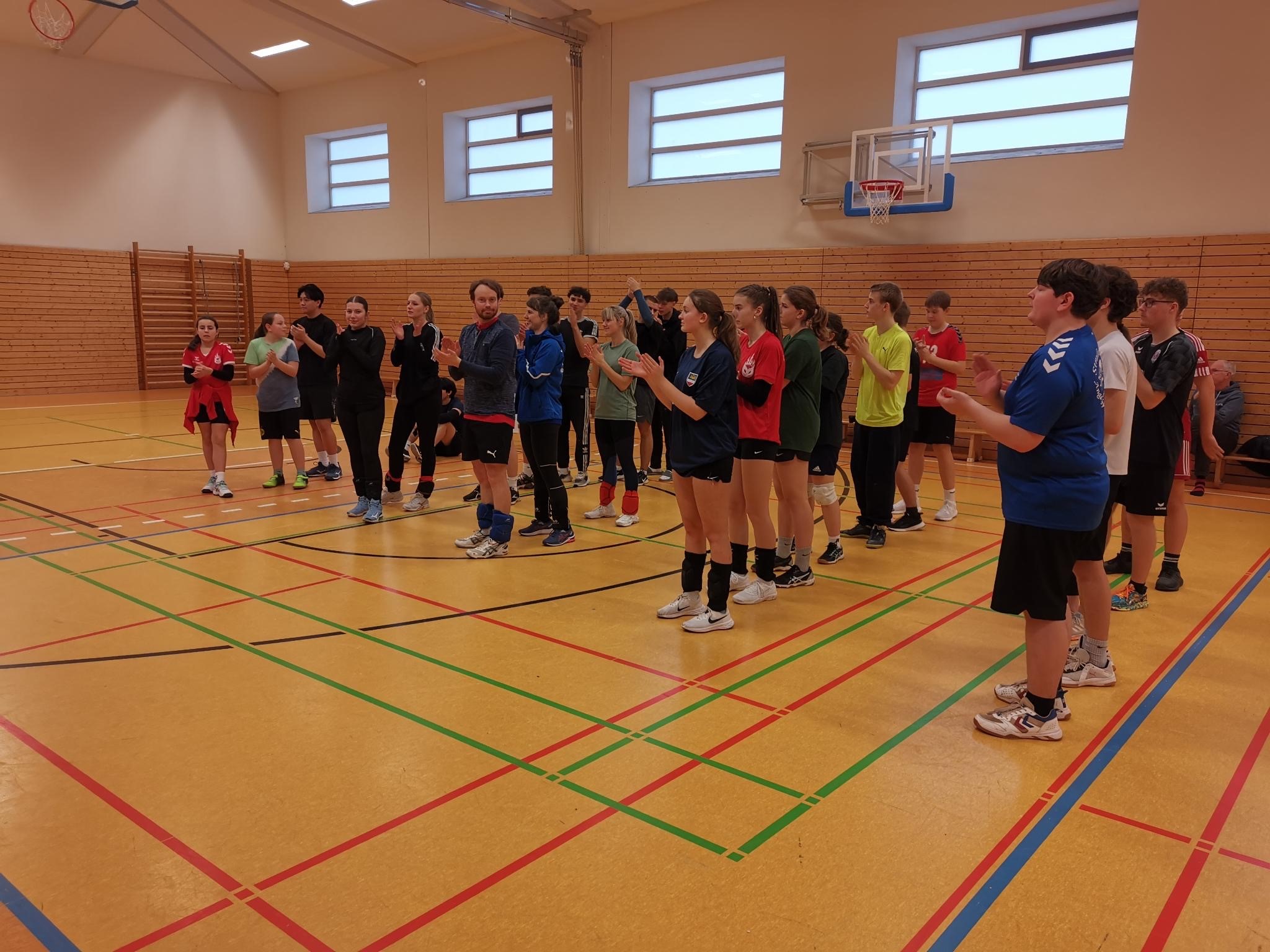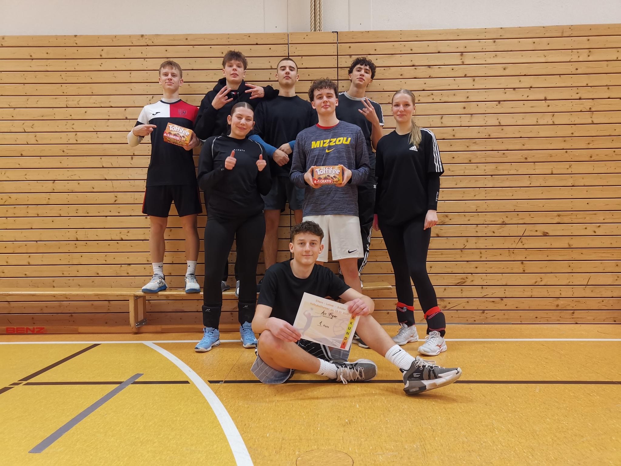 Am 18. Januar 2025 fand in unserer Turnhalle ein aufregendes Schüler-Lehrer-Volleyballturnier statt. Von 9 bis 13 Uhr traten fünf bunt gemischte Mannschaften gegeneinander an, was zu einer tollen Dynamik auf dem Spielfeld führte. Die Atmosphäre war von Beginn an voller Energie und Begeisterung. Die Spielerinnen und Spieler zeigten beeindruckende Leistungen, und es gab zahlreiche spannende Ballwechsel. Sowohl die Schüler als auch die Lehrer brachten ihre eigenen Stärken ein, was für abwechslungsreiche und unterhaltsame Spiele sorgte.