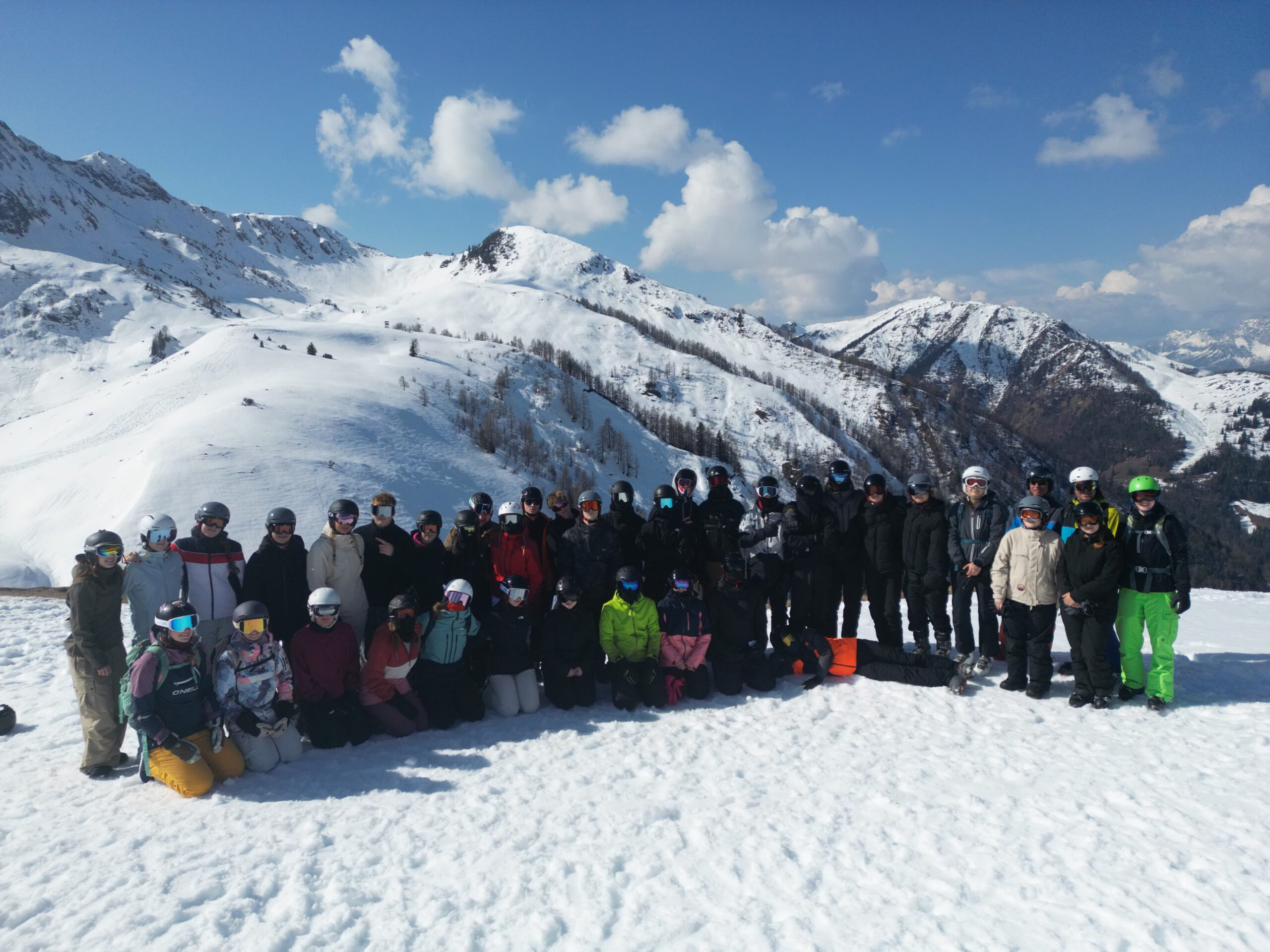 Während die Anfänger am nächsten Tag fleißig die alpinen Grundübungen erlernten und sich mit Ski bzw. Snowboard sowie deren Eigenschaften vertraut machten, fanden die Fortgeschrittenen durch gezielte Übungen wieder in ihre Schwünge zurück. So wurde für alle eine gute Ausgangslage geschaffen, um in den folgenden Tagen viele Fortschritte zu erzielen. Mittags trafen wir uns mit allen Gruppen in der Berghütte, genossen eine Pause mit eigenen Snacks, Kaiserschmarrn, Pommes oder einem erfrischenden Skiwasser – eine perfekte Stärkung für den zweiten Teil auf der Piste.