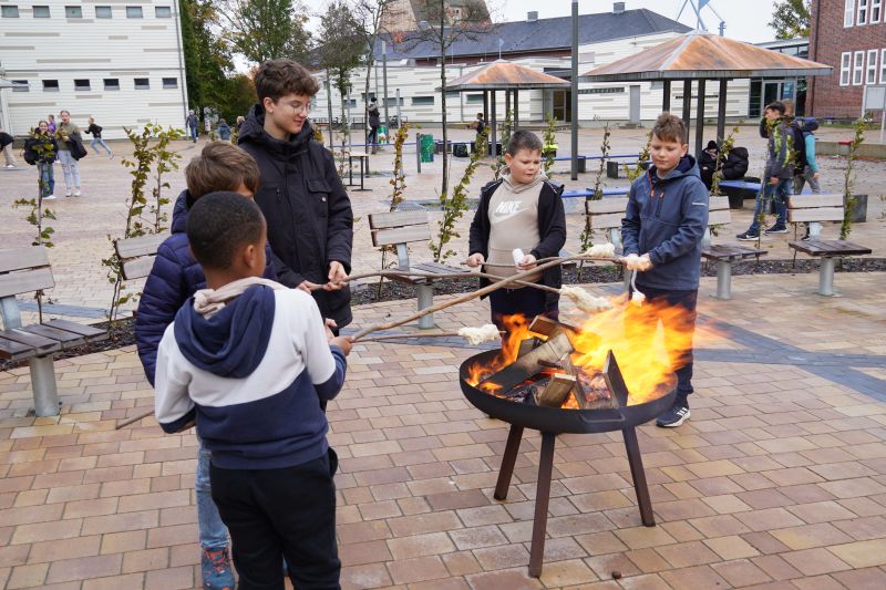 Bei widrigen Wetterverhältnissen sorgten Stockbrot, Kuchenbuffet und der Bratwurststand für das leibliche Wohl. Nebenbei wurde bei lauter Musik gespielt, getanzt und mitgesungen. Durch die tatkräftige Unterstützung der Eltern und Schüler der Klassenstufen 9, 10 und 11 wurde das Fest an vielen verschiedenen Stationen abgesichert und ein voller Erfolg. Das Kürbisfest rief bei allen TeilnehmerInnen Begeisterung hervor und hinterließ ein glückliches Lächeln auf vielen Gesichtern.