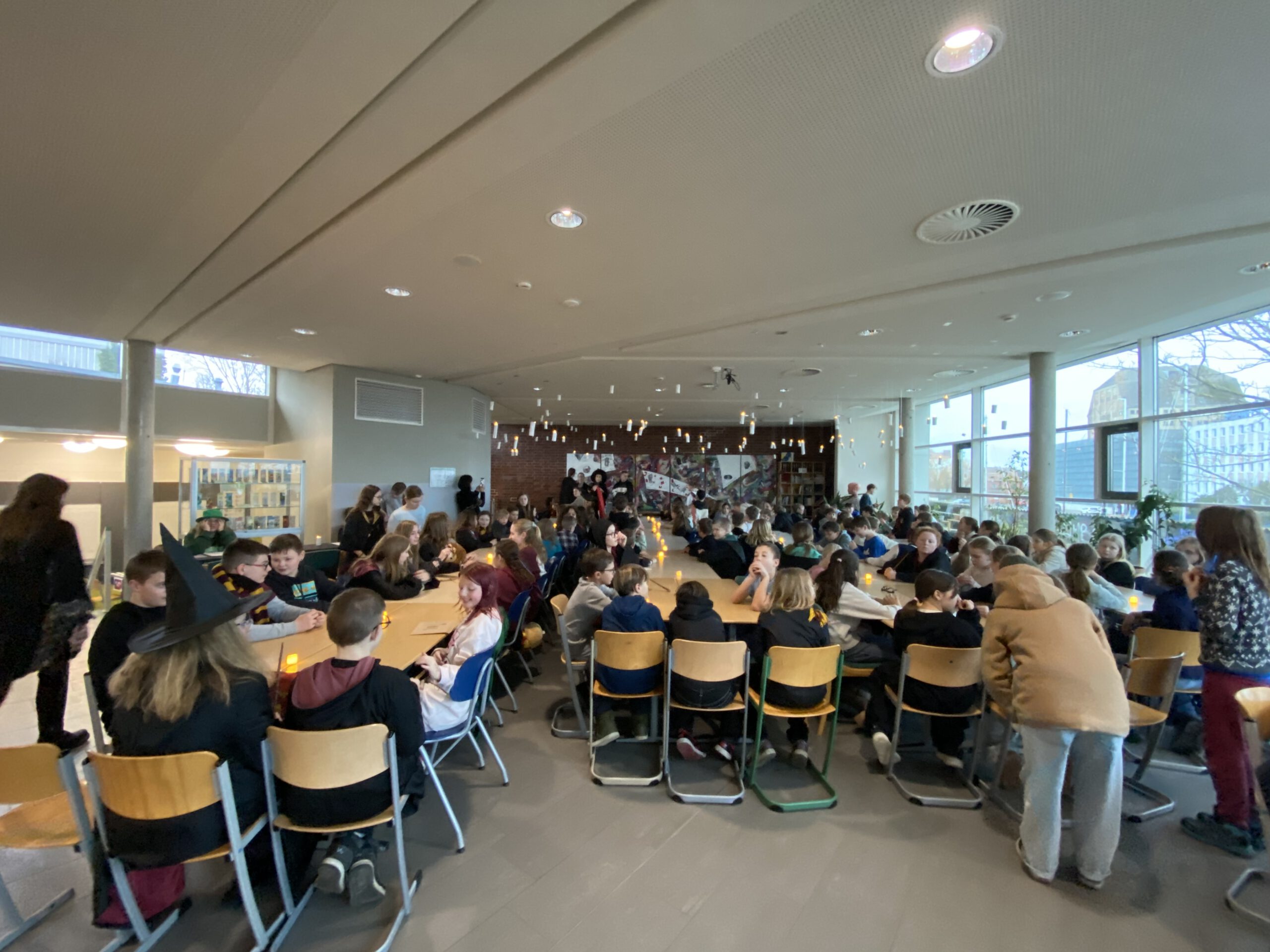 Die Tore nach Hogwarts wurden am 30. Januar in unsere Schule verschoben und für die Schüler der fünften und sechsten Klasse geöffnet. Die Organisatoren des ganzen Events haben diejenigen übernommen, die sich in der Projektwoche für das Projekt „Harry Potter“ entschieden hatten. Die jungen Magier hatten die Möglichkeit, Harry Potter Teil 1 zu sehen, sich ein spannendes Quidditch-Match zu liefern, ihre eigenen Zauberstäbe zu basteln und sich einem Haus zuordnen zu lassen. Außerdem konnten sie die unterschiedlichsten Süßigkeiten an einem zauberhaften Buffet genießen.